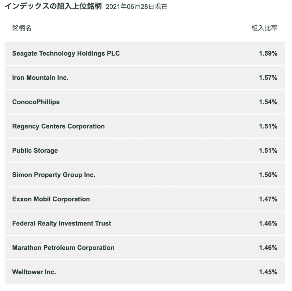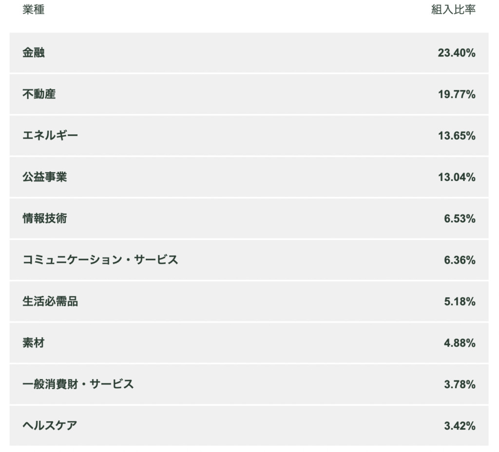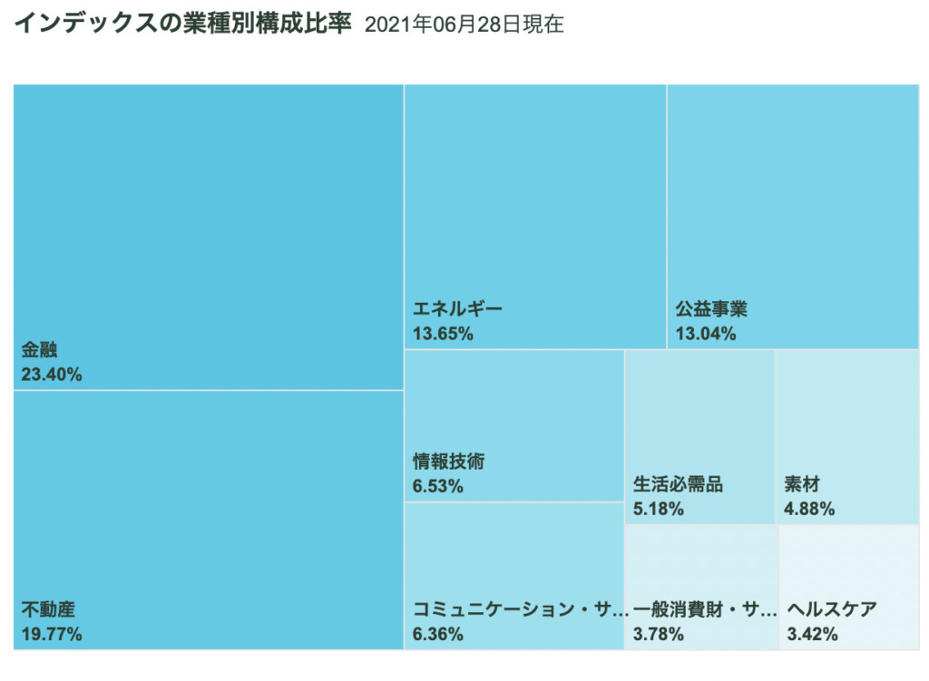 運用会社 ステート・ストリート(アメリカ) 正式名称 SPDR Portfolio S&P 500 High Dividend ETF (SPDR ポートフォリオS&P 500 高配当株式ETF) 設定日 2015年10月 経費率 0.07% 直近配当利回り 3.98% *2021年6月現在 配当時期 3月、6月、9月、12月の年4回 セクター 金融、不動産、エネルギー、など 構成銘柄上位10社 2021年6月現在